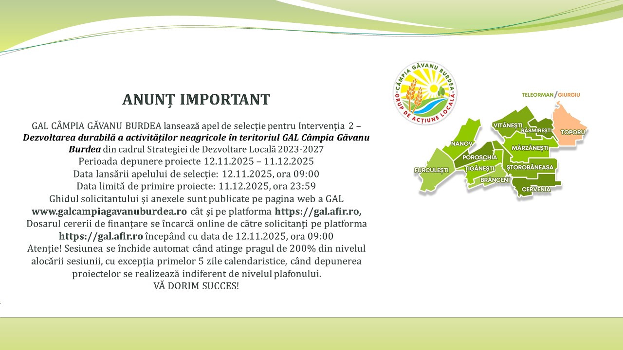 Anunț deschidere apel de selecție Intervenția 2