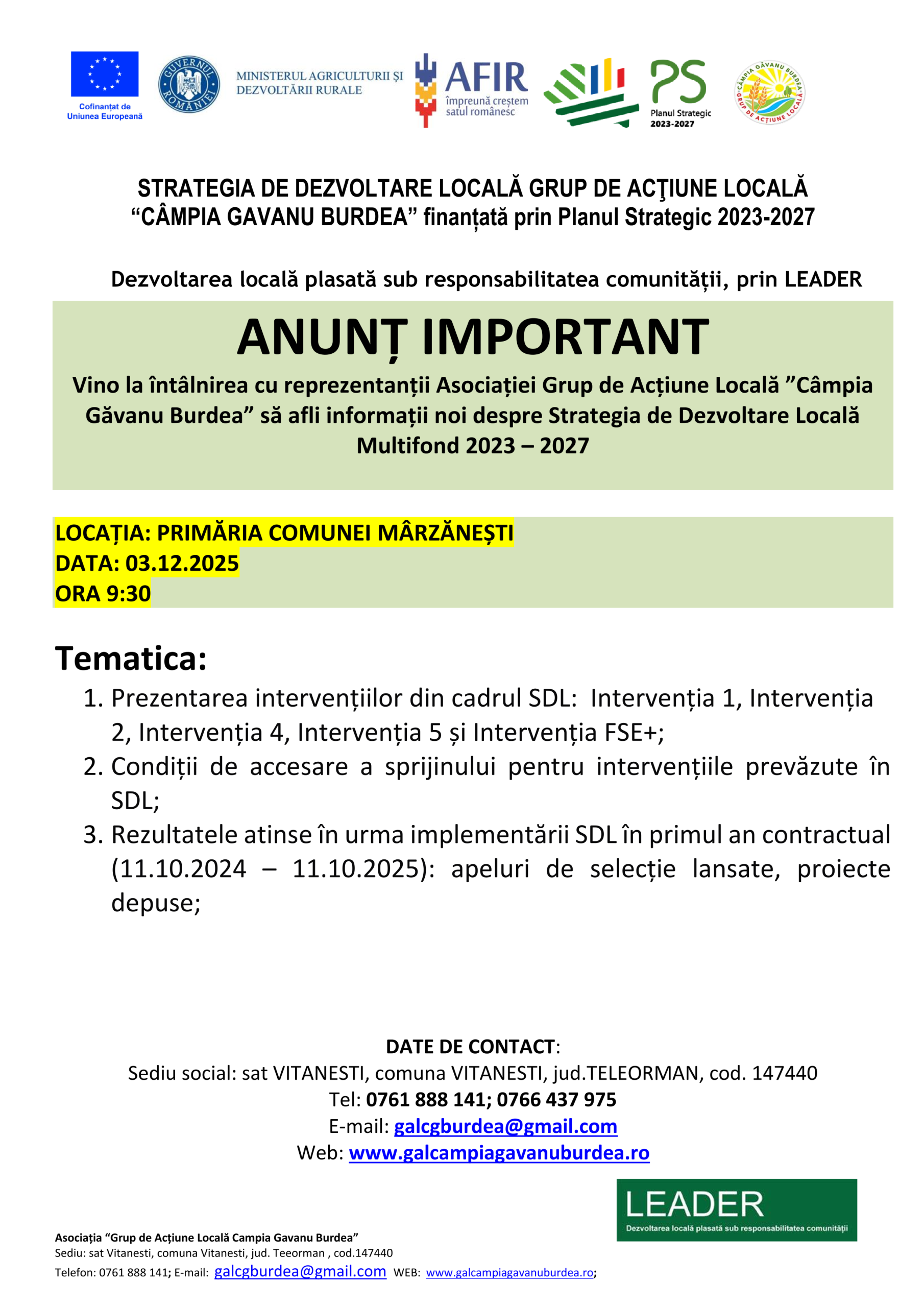 Întâlnire animare Mârzănești 3 decembrie 2025