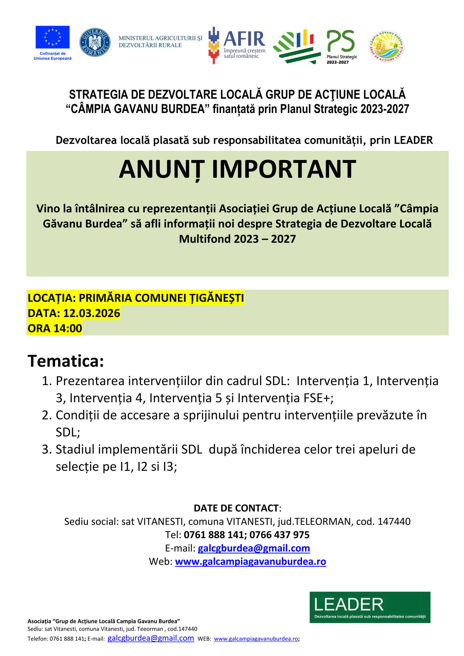 Intervenția FEADR 1 – Suport pentru dezvoltare locală orientată spre nevoi comunitare